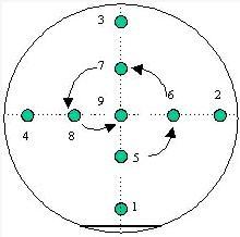 其(qi)實外延(yan)片(pian)的(de)生產制(zhi)作過(guo)程(cheng)是(shi)非(fei)常(chang)復(fu)雜(za)的(de),生產設備(bei)基(ji)本(ben)上(shang)選用原裝進(jin)口(kou)為主(zhu);在展(zhan)完(wan)外延(yan)片(pian)後,下壹(yi)步(bu)就(jiu)開始(shi)對(dui)LED外延(yan)片(pian)做電(dian)極(ji)(P極,N極(ji)),接著(zhe)就(jiu)開始(shi)用激(ji)光(guang)機(ji)切割(ge)LED外延(yan)片(pian)(以前切割(ge)LED外延(yan)片(pian)主要(yao)用(yong)鉆(zuan)石(shi)刀),制(zhi)造(zao)成芯(xin)片(pian)後,在晶(jing)圓(yuan)上(shang)的(de)不同(tong)位(wei)置抽(chou)取九(jiu)個點做參(can)數(shu)測(ce)試,如圖所示(shi):