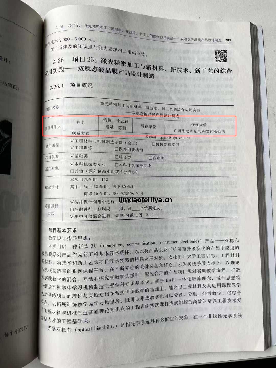 激(ji)光(guang)精密(mi)加工(gong)與(yu)新(xin)材(cai)料、新技術、新工(gong)藝(yi)的(de)綜合(he)應用(yong)實踐—雙(shuang)穩(wen)態液(ye)晶(jing)膜(mo)產品(pin)設(she)計(ji)制造(zao)項(xiang)目(mu)是(shi)由(you)浙(zhe)江大(da)學和廣(guang)州華之(zhi)尊光電科技有限(xian)公(gong)司(si)基(ji)於(yu)新(xin)材(cai)料、新技術、新工(gong)藝(yi)共(gong)同(tong)推(tui)出的新(xin)型(xing)教(jiao)材(cai)。項(xiang)目(mu)以(yi)新型(xing)3C產(chan)品(pin)壹(yi)雙(shuang)穩(wen)態液(ye)晶(jing)膜(mo)系列產品(pin)作(zuo)為(wei)新工(gong)科基本(ben)教(jiao)學教體(ti),項(xiang)目(mu)依托浙江大(da)學工(gong)程(cheng)訓(xun)練(lian)、工(gong)程(cheng)材(cai)料與(yu)機(ji)械制造(zao)基礎系列課程(cheng)平(ping)臺(tai),在不(bu)斷(duan)完善的(de)關鍵(jian)裝(zhuang)備和核(he)心工(gong)藝(yi)為(wei)實現手(shou)段支(zhi)撐下,以(yi)理論和實踐教學的混(hun)合(he)、互(hu)動(dong)和探(tan)究(jiu)式(shi)教(jiao)學為(wei)抓手,配(pei)置(zhi)合(he)理的(de)產品(pin)項(xiang)目(mu)規劃實(shi)訓教學流程,打(da)造並(bing)健(jian)全(quan)本(ben)科學生學習(xi)機(ji)械制造(zao)工(gong)程(cheng)學科知識基(ji)礎(chu)課(ke)。基於(yu)KAPI壹體化培養(yang)理念(nian),設(she)計(ji)思(si)想特(te)色(se)是(shi)訓(xun)練(lian)項(xiang)目(mu)的理(li)論與(yu)實(shi)踐建(jian)構在常(chang)規訓練(lian)教學的基(ji)礎(chu)上,輔之(zhi)以(yi)工(gong)程(cheng)材(cai)料及(ji)其(qi)應用(yong)課程(cheng)教(jiao)學要點(dian),以(yi)拓展訓練(lian)教學為(wei)學習(xi)增強(qiang)段,既(ji)可以(yi)集成(cheng)教學也(ye)可以(yi)分段、分組、分散(san)教(jiao)學,將綜合(he)了工(gong)程(cheng)材(cai)料與(yu)機(ji)械制造(zao)基礎理論知(zhi)識點(dian)的工(gong)程(cheng)訓(xun)練(lian)實踐課打(da)造(zao)成(cheng)能(neng)較(jiao)為(wei)高效的培養(yang)工(gong)程(cheng)技(ji)術復合(he)型(xing)人才(cai)的工(gong)程(cheng)基(ji)礎(chu)課(ke)。