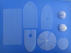 房間隔(ge)缺(que)損(sun)封堵(du)器(qi)壹(yi)般(ban)為(wei)鎳(nie)鈦合(he)金,內(nei)附高(gao)分子(zi)生(sheng)物薄膜(mo),網(wang)狀結(jie)構(gou)內部填(tian)充有聚(ju)酯(zhi)滌(di)綸或(huo)聚(ju)四氟(fu)乙(yi)烯,常用(yong)的有牛心(xin)包(bao)瓣膜(mo)和豬心(xin)包(bao)瓣膜(mo)。可用(yong)於治(zhi)療(liao)先(xian)天(tian)性(xing)心臟病(bing)、乳房再造 、眼球萎(wei)縮義(yi)眼(yan)再(zai)造 、喉部再(zai)造 、硬(ying)腦膜 、頸(jing)動脈(mai)內膜(mo)剝(bo)脫(tuo)等各(ge)類(lei)醫療(liao)過程中(zhong)。